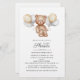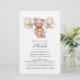 Convite de Chá de fraldas de Script de Balões de Urso Orçamentário. Cartão de convite à apresentação de chás de fraldas, com tendência e sexo neutro, que inclui um bebê urso com balões. Perfeito para chás de fraldas de rapazes e raparigas.