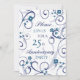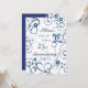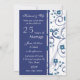 Cartão de convite de festa de aniversário de casamento de 25 anos em padrão floral branco e azul elegante, delicado e sofisticado com redemoinhos divertidos. Personalizável com os detalhes da sua festa.