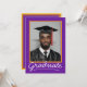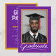 Celebre o marco do seu formando com este cartão de convite à graduação elegante e personalizável. Apresentando um tema clássico, roxo e escola de ouro e espaço para a foto, o nome, a escola e os detalhes do evento do seu formando, este design oferece uma forma eterno de convidar os entes queridos para o grande dia. Perfeito para segundo grau ou formandos! 𝐍 𝐎 𝐄! As cores do fundo e os elementos podem ser alterados. Apenas certifique-se de ajustá-los nos dois lados, na frente e atrás.