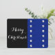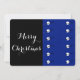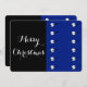 Cartão de Natal com Papai Noel em suas silhuetas de trenó sobre fundo azul e o texto: "Feliz Natal" sobre fundo negro com nome personalizável.