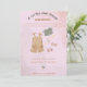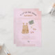 Um charmoso convite para chás de fraldas em tons de bege suave e aquarela cor-de-rosa. O design apresenta roupas adoráveis para bebês, calçados, pacificador e um sorvete de trigo. O texto anuncia uma celebração por esperar pais, com fontes elegantes e estilo quente e rústico. O convite inclui os detalhes de data, hora, local e RSVP.