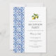Personalize este cartão de convite para recepção de azulejos de limão costeiros Amalfi com suas próprias redações, de forma fácil e rápida, basta pressionar o botão personalizá-lo para reorganizar e formatar o estilo e a colocação do texto.