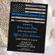 Convites de aposentadoria de linha azul fina ou convites para Festa de formatura de polícia. Celebre anos de serviço dedicado, ou comemore seu novo formando da academia de polícia, e convide amigos e família para a sua polícia com este convite à aposentadoria da polícia de linha azul fina e convites para formandos da academia de polícia - design de bandeira americana na polícia, cores angustiadas da design. Este convite para aposentadoria de policial também é perfeito para convites para formatura na academia de polícia, mudança de local na personalização. Veja nossa coleção para combinar presentes de aposentadoria, presentes de graduação policial, favoritos para festas e suprimentos. COPYRIGHT © 2021 Judy Burrows, Black Dog Art - Todos Os Direitos Reservados. Cartão-postal de Anúncio da polícia com Baixa de