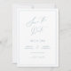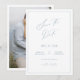 Um cartão minimalista para salvar a data com caligrafia moderna em um tom azul desbotado, perfeito para anunciar seu casamento.