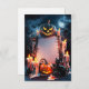 O convite de Halloween exude um charme festivo e assustador, perfeito para dar o tom para uma celebração de Halloween. O espaço central do vazio aguarda seus detalhes personalizados do evento, seguidos por abóboras esculpidas brilhantes, luz de velas quente e folhas dispersas do outono. Sobremesa, uma corda de luzes piscando e morcegos flamejantes adiciona à atmosfera estranha, mas convidativa. O fundo do céu à noite escura completa o tema do Halloween, fazer que este cartão seja a escolha ideal para convidar convidados para uma festa memorável do Halloween.
