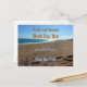 Cartões de convite tema praia exclusivos com citação, 'nossa história começa'. Apresenta um belo fundo de praia.