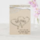 Par de corações na areia da praia com surf branco de gelo no oceano para o 50º aniversário de casamento. Os anos de aniversário podem ser editados. O texto pode ser alterado ou excluído.