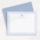 Um cartão azul encantador de notas de berçário de gingham para um menino, com uma delicada ilustração de cavalo de balanço e texto personalizável. Perfeito para notas de obrigado, correspondência pessoal ou papelaria de quarto, este design de eterno combina um padrão clássico de cheque azul com detalhes elegantes. Um belo manejo e uma maneira séria de enviar mensagens calorosas para os entes queridos.