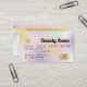 Um elegante e moderno, na moda, Cabelo de beleza e cartão de visita do estilo de cartão de crédito artístico de maquiagem, com uma tipografia de fontes moderna num fundo holográfico iridescente de náacre chic e de vidro metálico dourado. todo o texto é personalizável, adicione a mídia social. Apresentando uma fita de ouro falsa. Adicione seu logotipo, seu monograma e código QR.