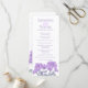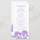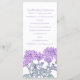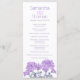 Flor roxa de crisântemo de dupla face em um programa de casamento branco. Conjunto de papéis de carta de desenho botânico floral. Edite este programa de casamento com seu próprio nome, datas, texto da cerimônia, assistentes de festa de casamento e obrigados. Um programa simples, mas elegante, simplesmente substitua o texto de amostra por seus detalhes de casamento. Programa de cerimônia de casamento roxo moderno. Desenho e design por Sarah Trett por www.sarahtrett.com para www.mylittleeden.com