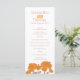 Flor de laranja do crisântemo duplo num programa de casamento branco. Coleção de casamento de desenho botânico. Edite este programa de casamento com seu próprio nome, datas, texto da cerimônia, assistentes de festa de casamento. Um programa simples, mas elegante, simplesmente substitua o texto de amostra por seus detalhes de casamento. Programa de cerimônia de casamento de flores de laranja no outono moderno. Desenho esboço e design gráfico por Sarah Trett para www.mylittleedenweddings.com