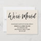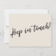 Mantenha seus amigos e familiares atualizados com seu novo endereço usando esses cartões de anúncio simples e elegantes. Você pode inseri-los em suas mensagens no tema do casamento ou compartilhá-los pessoalmente, como você vê ajustado. Quer você seja um recém-casado ou apenas queira uma design única para deixar sua tribo saber como encontrá-lo, esta carta é versátil o suficiente para qualquer um. Ele apresenta gráficos de tipografia bonito que leem "Nós nos movemos" na frente e "Mantenha contato!" no verso, usando uma fonte moderna, casual, escrita à mão. Use os campos modelo para adicionar todos os seus próprios detalhes para personalizar este design para seu próprio uso. Se você quiser alterar a fonte bonito e simples sans-serif que usei para o texto editável ou se quiser mover algumas linhas para outro lugar, clique no link para personalizar a placa ainda mais. O tipo preto foi colocado sobre um fundo creme esbranquiçado editável; você pode mudar isso para qualquer cor que desejar. 90 //