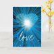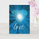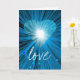 Design moderno com um coração azul e branco brilhante e cintilante em um fundo azul, branco e preto brilhante. Cartão de cumprimentos com um design personalizável azul, preto e branco para você personalizar com seu próprio texto, imagens e ideias. O texto pode ser facilmente alterado usando o modelo fornecido ou clicando no botão 'Personalizar' para fazer outras alterações. Criado por Jess Perry usando fotografias originais e técnicas digitais.