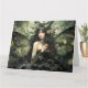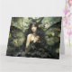 Um Cartão colorido deslumbrante. Fada de cabelos longos entre flores e borboletas.
