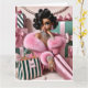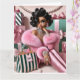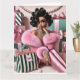 Mulher elegante rodeada por presentes de Natal rosa e verde