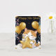 Celebre o Ano Novo com este gato calico aconchegante, balões dourados e fogos de artifício cintilantes!