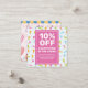 O seu doce negócio compre está a explodir com delícias e doces suculentos prontos para venda? Compartilhe sobre sua terra maravilhosa de doces com um cartão de cupom de desconto que irá desenhar os clientes a fazerem suas encomendas em seu compro. Quem não ama doces, chocolates, cupcakes e fudge? Este design brincalhão provoca alegria com um padrão doce de picolés, sorvetes, lábios e doces em cores felizes que terão clientes entregando seus doces dentes em sua loja. Você pode adicionar esta oferta especial às bolsas de captura de eventos e outras formas de anunciar sua venda e levar mais clientes para sua loja de doces ou chocolate físico ou online. Arranjados para lojas de doces e padarias que vendem produtos de panificação, cupcakes, doces, chocolates, sorvetes e outros doces e empresas de sobremesa. O cartão permite inserir sua porcentagem de venda, termos e condições e adicionar suas informações comerciais.
