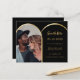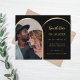 Na frente: Adicione sua própria foto vertical. Uma moldura de arco de foto em dourado falso. Um fundo preto clássico, texto dourado. Personalize e adicione seus nomes e a data.