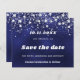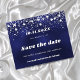 A Save the Date for a 50th (or any age) festa de aniversário. Um fundo azul marinho colorido. A cor azul é irregular. Decorado com estrelas de falso prata. Para ele e para ela.