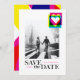 Um cartão de foto de data de salvamento de design moderno com um toque brilhante de cor no estilo de impressão CMYK.