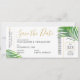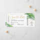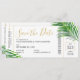 Folhas de palmeira verde tropical (frondes) em um simples, moderno e mínimo bilhete de avião de passagem de design, salvo o cartão perfeito para um casamento na praia ou um casamento na ilha tropical. Todo texto pode ser personalizado, assim como o texto e a cor do plano de fundo. Clique em PERSONALIZAR MAIS para fazer isso no editor avançado.