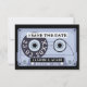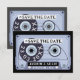Cartão de Data de Salvamento de Fita Cassete Preta Retro. Anuncie seu grande dia com este impressionante design de fita cassete retrô em preto e cinza suave. Perfeito para amantes de música, casais ousados e temas de casamento modernos ou arrojados. Uma maneira elegante e nostálgica de se destacar da multidão.