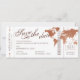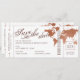 Os Cartões salve a data de Passagem de Embarque apresentam um elegante design de mapa moderno com um design de tema viagem de folha de cobre falso. Todas as cores de texto e fundo são editáveis, de modo que você pode criar seu próprio design usando este modelo para uma passagem de avião que foi projetada com um casamento de destino ou um casamento do tema viagem ou uma celebração de renovação de votos em mente. Visite a coleção de designer do Custom Paper Works para obter itens correspondentes.