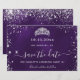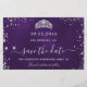 Uma garota e moda Salve o cartão de data para uma doce festa de aniversário 16, 16. Um fundo púrpura incolor. Decorado com pó falso prateado e uma tiara, coroa. O texto: Salvar a Data é gravado com um script de estilo com letra de tendência grande.