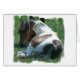 O cavalo de pintura enrolou-se descansando no cartão de saudação de grama.