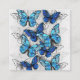 Composição vertical de borboletas de morfo realistas, azuis e brancas sobre fundo texturizado de cinzas. Borboleta azul Morpho.