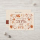 Ofereça economia exclusiva com estilo usando nossa Elegante placa de desconto de padrão floral Rustic Boho Brown Fall. Apresentando um rico pano de fundo marrom rústico enfeitado com sotaques florais de outono intrincados, este vale captura a essência do outono com um toque de sofisticação. Perfeito para promoções sazonais ou eventos especiais, o elegante design adiciona calor e charme, fazer uma forma memorável de recompensar seus clientes. Impressione seus clientes com um vale que seja tão na moda quanto sua marca, enquanto lhes dá a razão perfeita para retornar!