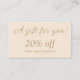 Cartão de desconto minimalista que dará à sua embalagem uma aparência elegante e simples.