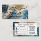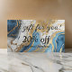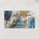 Cartão de desconto com um belo design de mármore azul, dourado e branco que dá uma aparência luxuosa e moderna.