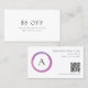 Modern business discount card featuring a simple yet professional design with your monogram inside of a pink and purple circle. Use the template to generate a QR code or remove it in the design editing tool.
