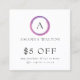 Modern business discount card featuring a simple yet professional design with your monogram inside of a pink and purple circle. Use the template to generate a QR code or remove it in the design editing tool.