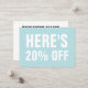 Cartão de desconto minimalista, moderno, simples e moderno, azul pastel. Se você quiser dar uma olhada em cartões de desconto mais pastéis, cartões de fidelidade, cartões de referência e cartões de visitas, vá para minha loja TheBusinesscardShop, clicando no logotipo da loja. Tenho muitos outros designs pastéis minimalistas lá.
