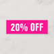 Cartão de desconto moderado, minimalista, moderno e simples em rosa brilhante.