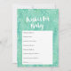 Divirta-se no seu chá de fraldas com um cartão de desejos de chá de fraldas de menta adorável. Peça aos seus hóspedes que encham este cartão e assinem o nome deles, para que o seu filho possa ler estes quando for mais velho! O belo cartão de desejos de chá de fraldas apresenta um fundo de cor verde-menta, pontos brancos e texto, e desejos personalizados.