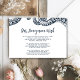 Mande seus convidados seus desejos adicionando este cartão de Desejo Honeymoon ao seu convite de casamento. O design apresenta tentáculos azuis de polvo marinho envoltos no cartão. A parte de trás apresenta um elegante design de quadro decorativo branco. Compre os itens de casamento coordenadores para combinar (vendidos separadamente). Itens correspondentes podem ser encontrados em nossa coleção 'Octopus Náutico do Marinho'.