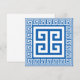 Cartão com padrão de chave grega (Meandro) elegante design branco e azul com borda de chave para combinar. Este design do famoso e popular padrão grego da linha contínua pode ser editado para mudar sua cor se desejar. Você também pode alterar a cor de fundo do design editando-o.