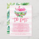 Este cartão de detalhes acompanha perfeitamente o convite do "Flamingle de Vamos" com o itinerário de sua fuga. Convide as suas raparigas para um aniversário ou uma despedida de solteira num local tropical e, em seguida, utilize este cartão para obter informações como uma lista de embalagem e informações de agenda. Também poderia ser usado como um complemento divertido do convite para o casamento tropical para detalhar os eventos de um casamento de destino. Para alterar o número de linhas de texto ou a sua cor, basta clicar no botão "personalizar"!