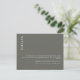Este cartão de cerimônia de detalhes do casamento apresenta uma combinação de cores boêmicas verdes sage e design moderna e minimalista. É um layout limpo que o torna perfeito para a sua celebração mínima de deserto ou boho.