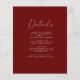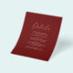 Este cartão de recepção mínimo é perfeito para um casamento elegante. O design apresenta um estilo minimalista simples. Personalize este cartão de recinto detalhado com as informações de recepção e inclua também o endereço do seu site de casamento! O PAPEL ORÇAMENTAL É FINO! ***ATUALIZAR PARA UM PAPEL MAIS ESPESADO. SEM ENVELOPES INCLUÍDOS.*** PARA CARTÃO STOCK, OU CARTÕES ESPESSURAS, clique neste link >> https://www.zazzle.com/z/aygflpoh?rf=238187168869594910 Ou transfira seu design para um cartão de resposta.
