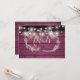 Um cartão de informações de detalhes de casamento rústico elegante com lindas luzes de corda e flores desenhadas à mão em um fundo de painéis de madeira vermelha burgundy. Personalize com seus detalhes especiais em tipografia elegante. Desenhado por Thisisnotme©
