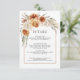 Pormenores de Casamento de Orange Floral Burnt Boho Cartão Bonito de Laranja Bóleo queimado e arranjo floral branco com cartão de detalhes de casamento de grama pampas. Este design também apresenta um arco e o arranjo floral inclui alguns pampas.