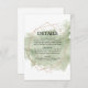 Moderno e minimalista, esta lavagem verde de aquarela flutua através do convite branco - enquadra perfeitamente os detalhes do seu casamento. Uma delicada armação geométrica rosa dourada define ainda mais o espaço. O texto é fácil de personalizar.