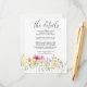Cartão de detalhes de casamento com flores silvestres delicadas e caligrafia bonita. Este lindo design de flores silvestres em aquarela tem flores delicadas de prado em rosa, lilás, laranja e amarelo. Perfeito para temas de primavera e verão, desde jardim floral country até boho orgânico. Se você quiser produtos correspondentes, por favor, navegue pela minha coleção Prado de Flores Silvestres ou me envie uma mensagem para adicionar os modelos de design que você precisa.