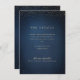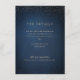 Brilho dourado falso em fundo azul marinho escuro e monograma sofisticado do casal no verso, Simples e elegante. Ótimo cartão de detalhes de casamento para casamento clássico moderno e casamento formal.