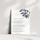 Projetados para combinar com a nossa coleção de convites para o casamento da Harvest Plum, estes cartões elegantes de informação rústicos apresentam um spray de folhas de aquarela no outono em tons ricos de violeta roxo e azul-marinho da meia-noite. Que informações incluir em um convite de casamento? Considere detalhes como acomodações de hotel, códigos de grupo, transporte, instruções, informações de recepção de boas-vindas e sua URL do site de casamento. Você pode até fazer upload de um mapa para o lado inverso usando a função Personalizar.