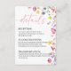 Compartilhe informações importantes com seus convidados usando este elegante cartão de detalhes Love in Bloom. Projetado com suaves flores silvestres em aquarela e um tema de jardim romântico, é a adição perfeita para o seu convite de casamento ou conjunto de convites para chá de noiva.
